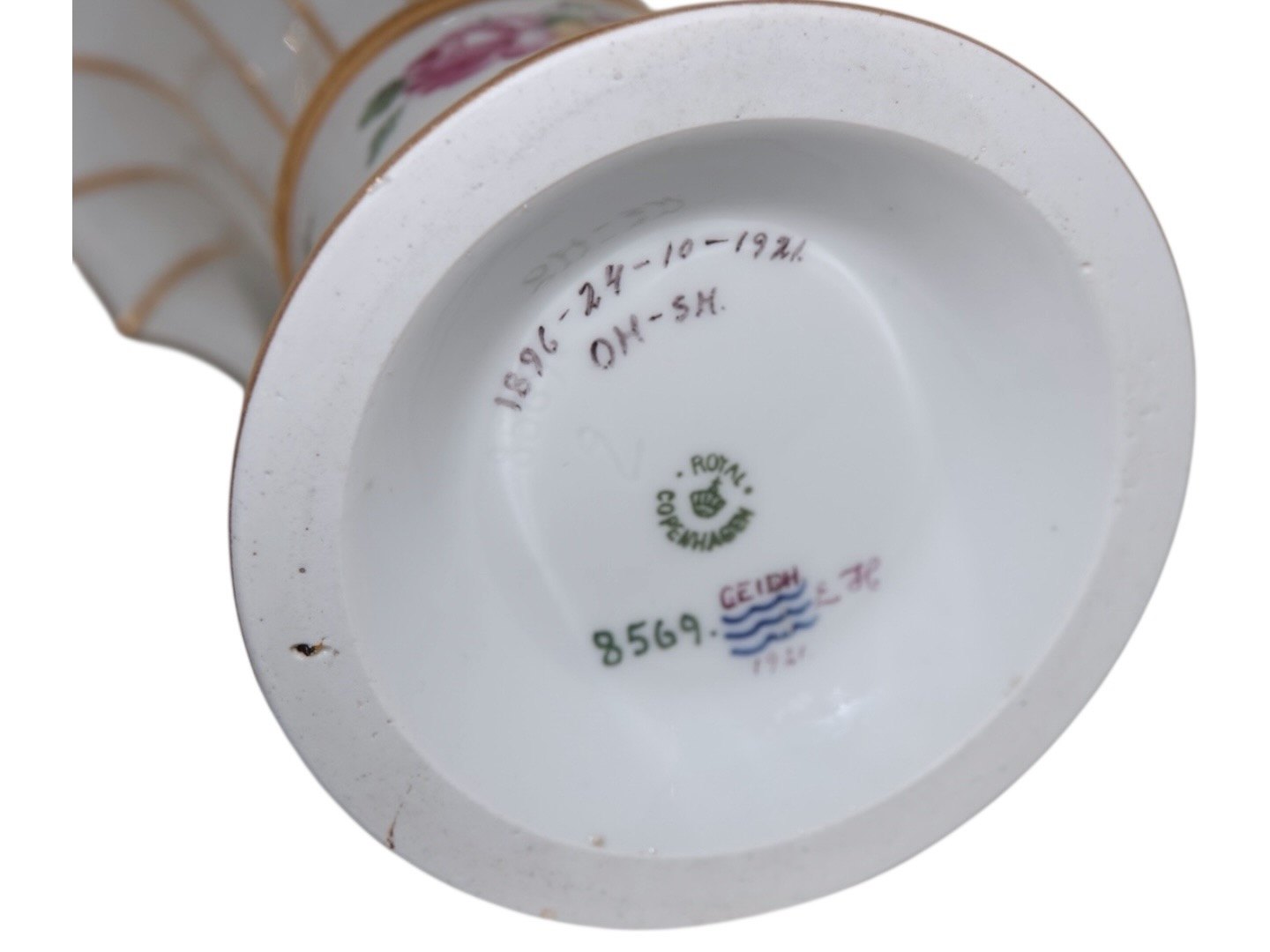 Royal Copenhagen Hetsch vase dekoreret med Henriette stil blomster.