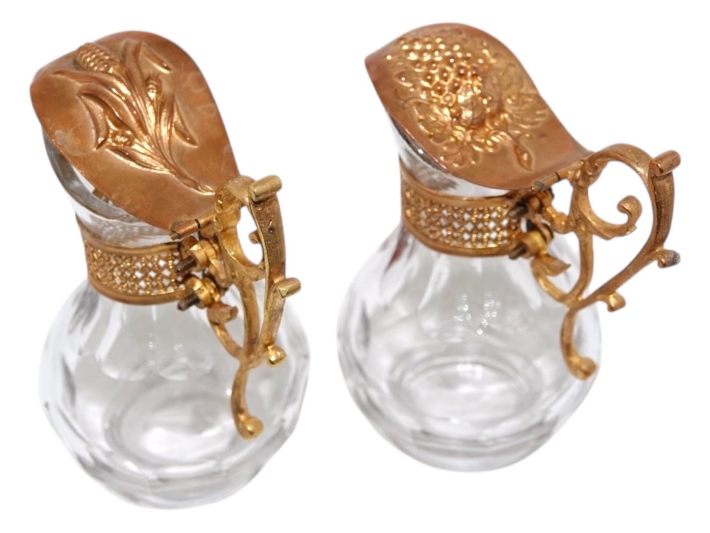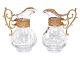 Et par små glaskander med bronze låg og dekoreret med henholdsvis et rødt og hvidt emalje kors. Der er fra omkring år 1900. Højde 10,5 cm. Fin og velholdt stand uden fejl. Prisen er for begge.