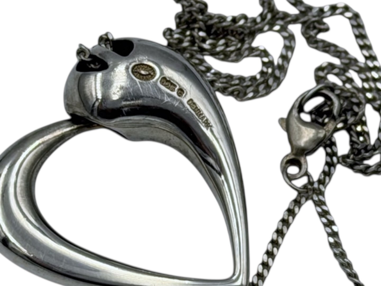 Georg Jensen sterling sølv, kraftigt hjerte vedhæng med halskæde.
