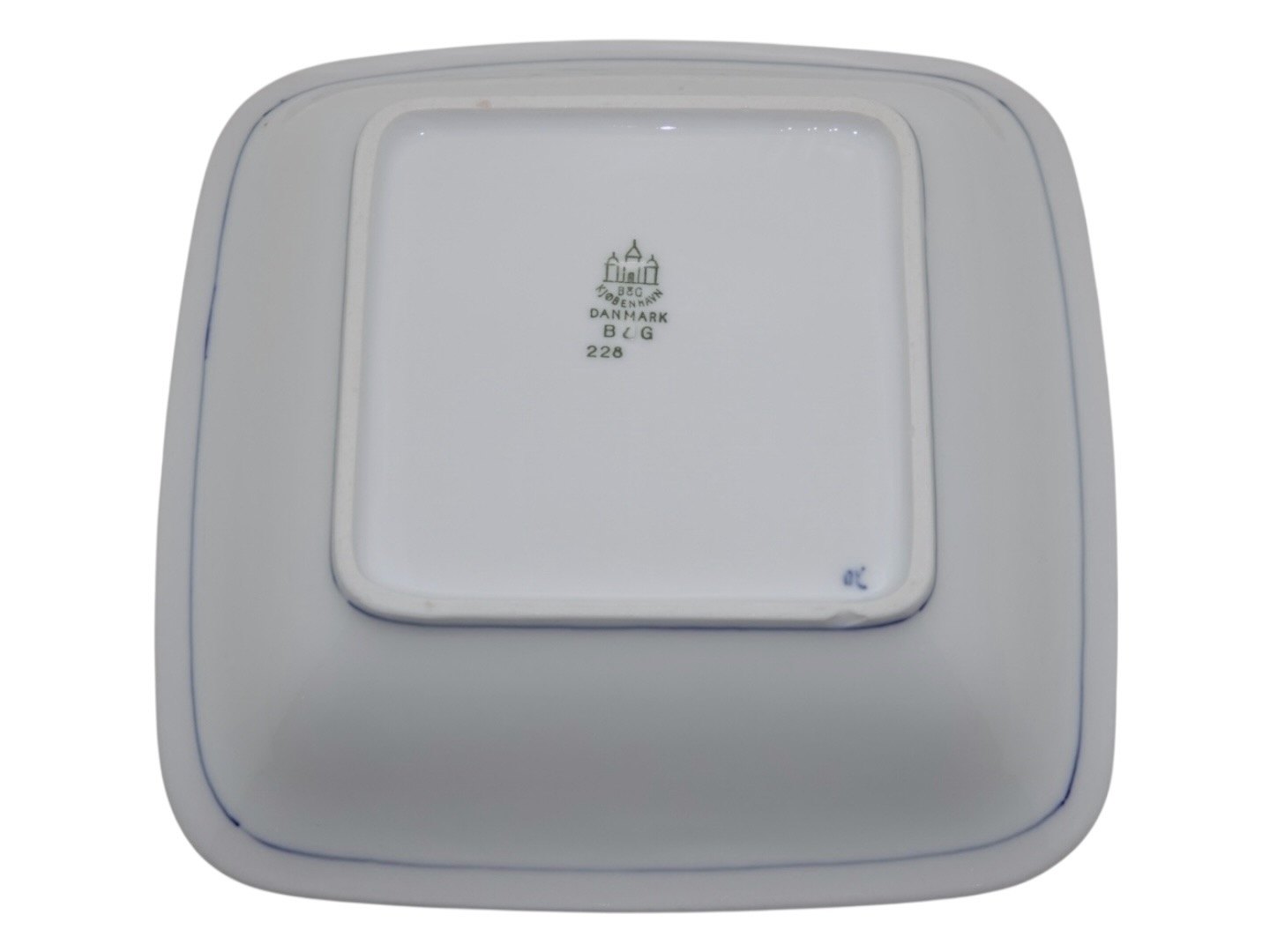 Bing & Grøndahl Empire, sjælden lille firkantet skål. Af fabriksmærket kan det udledes, at denne er fra mellem 1948 og 1952. Dekorationsnummer 228. 2. sortering. Måler 18,0 x 18,0 cm. Perfekt stand uden fejl.
