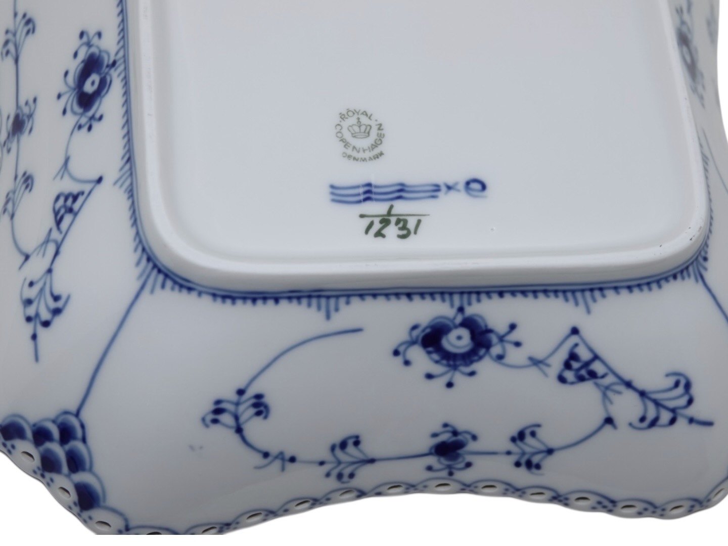 Royal Copenhagen Musselmalet Helblonde, firkantet kartoffelskål.
