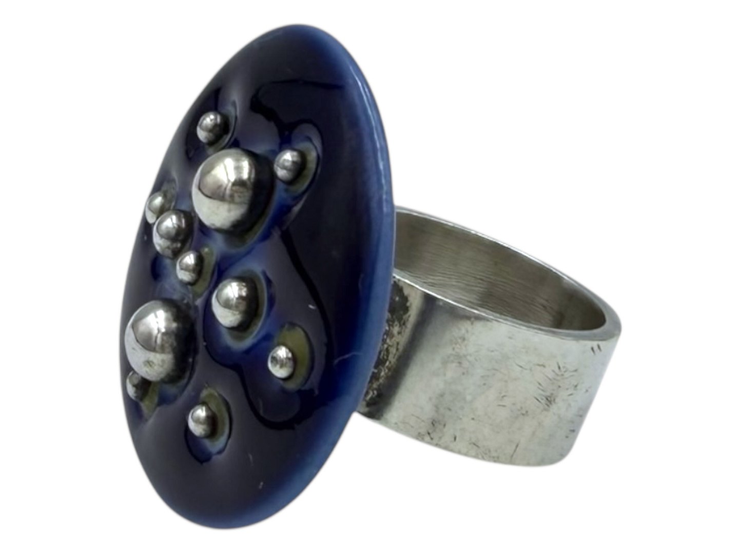 Royal Copenhagen sterlingsølv - stor ring med mørkeblåt porcelæn på toppen.