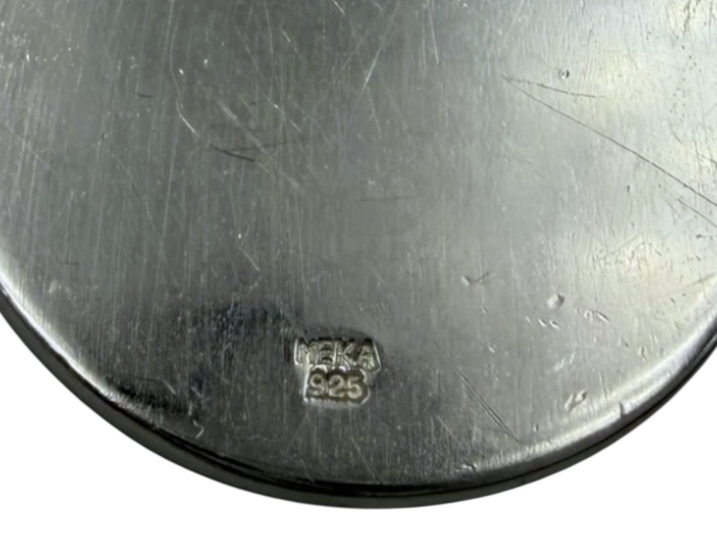 MEKA sterlingsølv med emalje, Irma vedhæng i meget tung kvalitet. Stemplet "MEKA 925". Diameter 3,0 cm. Fin og velholdt stand.