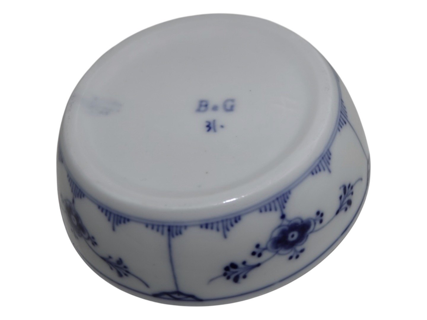 Bing & Grøndahl Blåmalet (Musselmalet), askebæger til pibe. Af fabriksmærket ses det, at denne er produceret mellem 1853 og 1895. 1. sortering. Diameter 10,3 cm. Perfekt stand uden fejl.