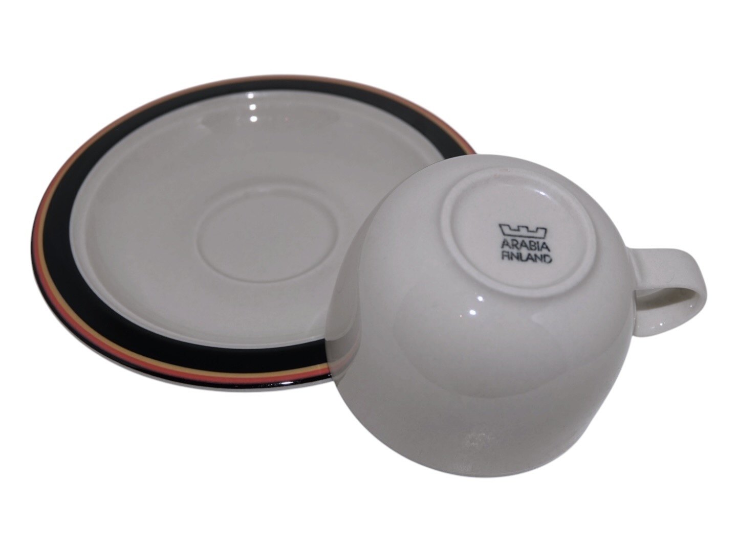 Arabia Finland Reimari, coffeecup with matching saucer. Designed by Inkeri Leivo and only produced between 1984 and 1988. The cup measures 7.3 cm. across and 5.5 cm. in height. Perfect condition.