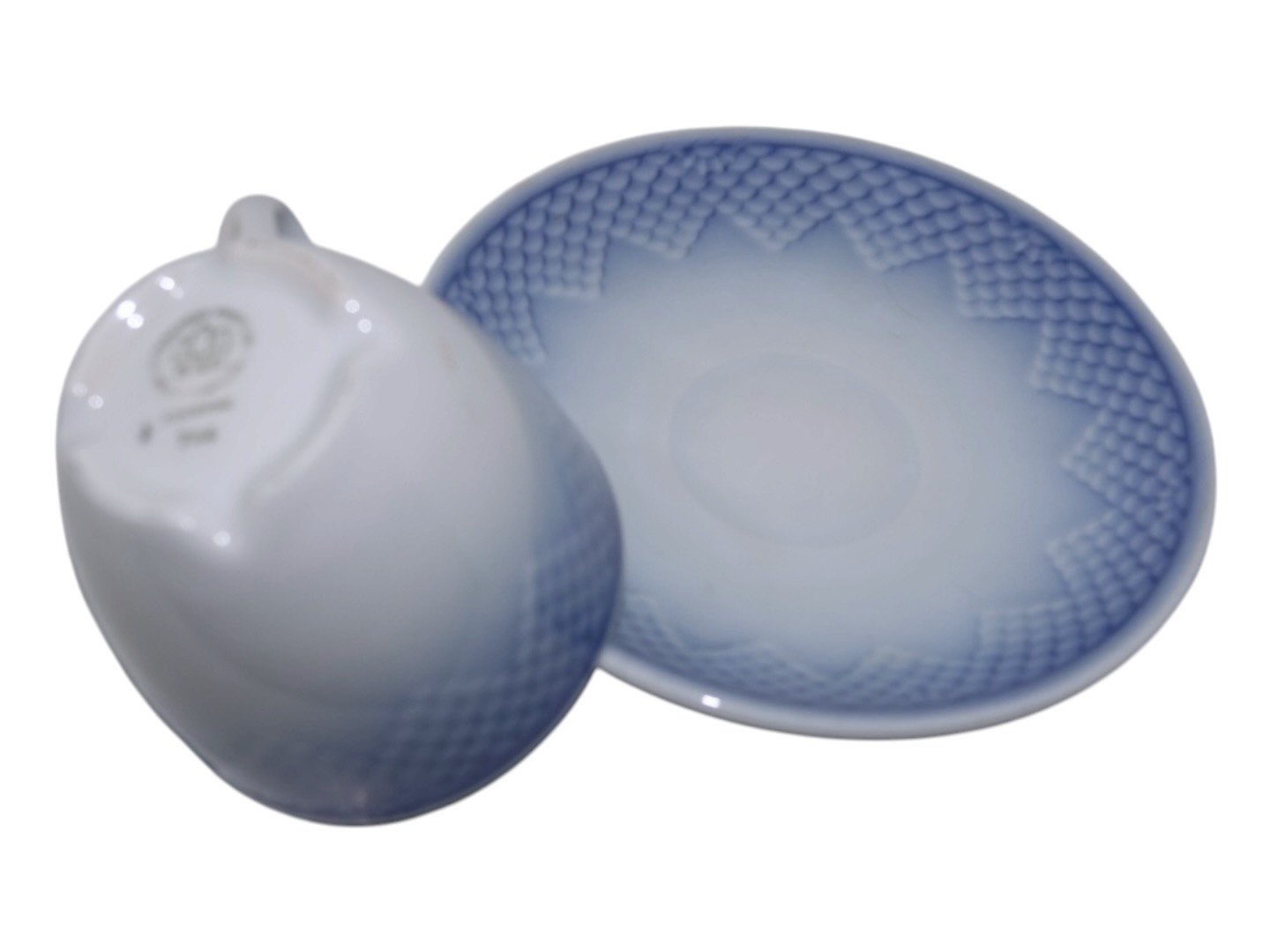 Bing & Grøndahl Blå Tone i tykt jernporcelæn, kaffekop med underkop. Dekorationsnummer 744. Disse er produceret mellem 1970 og 1983. 1. sortering. Koppens diameter er 7,7 cm. Perfekt stand uden fejl.