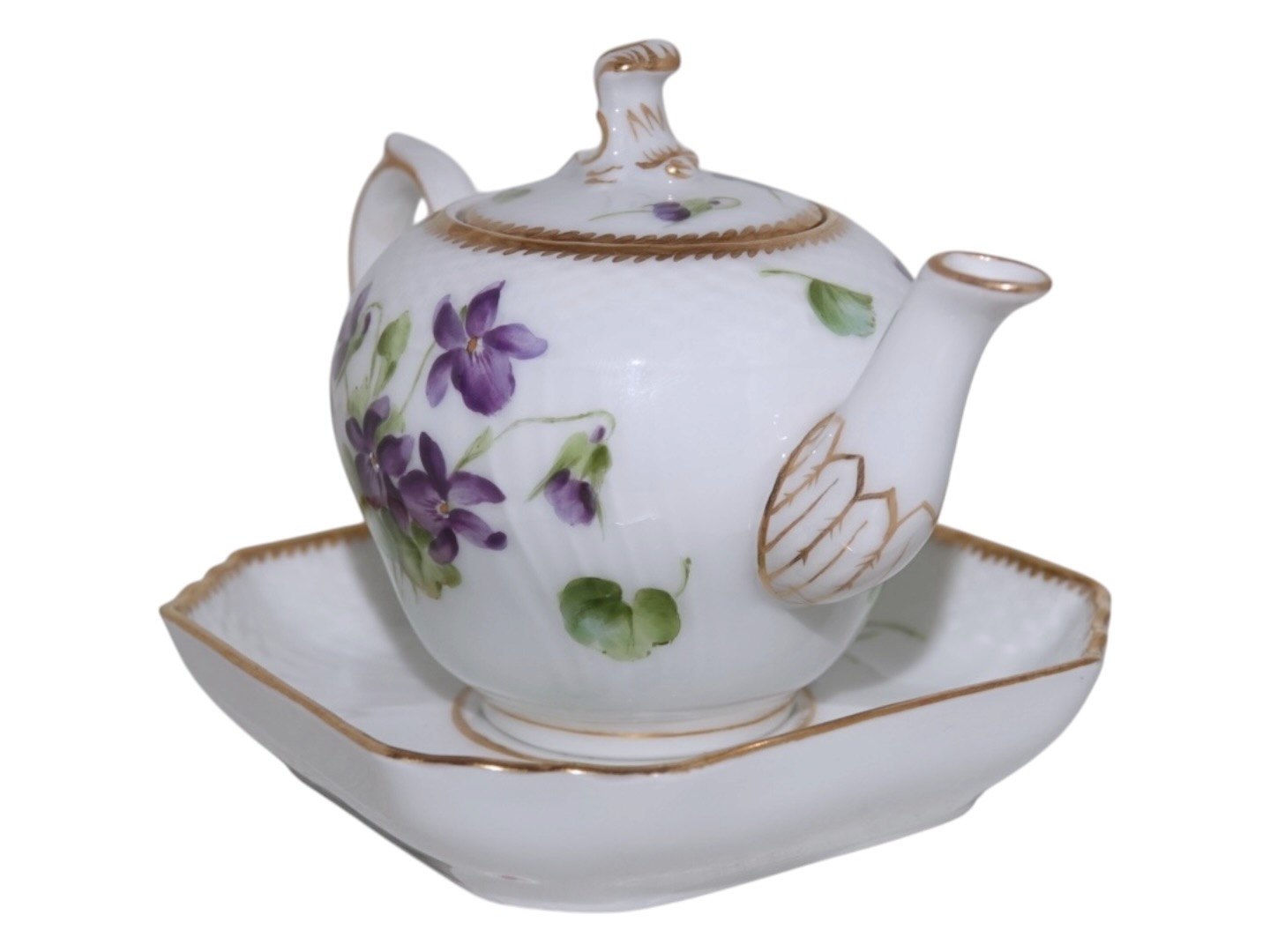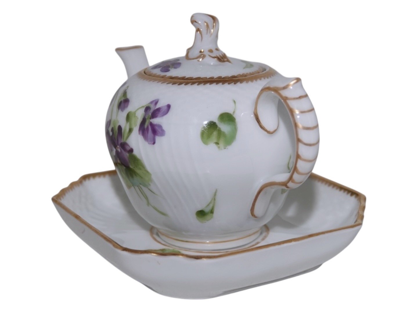 Royal Copenhagen Blå Violer med guldkant, mini mini tekande i dukkestel størrelse.