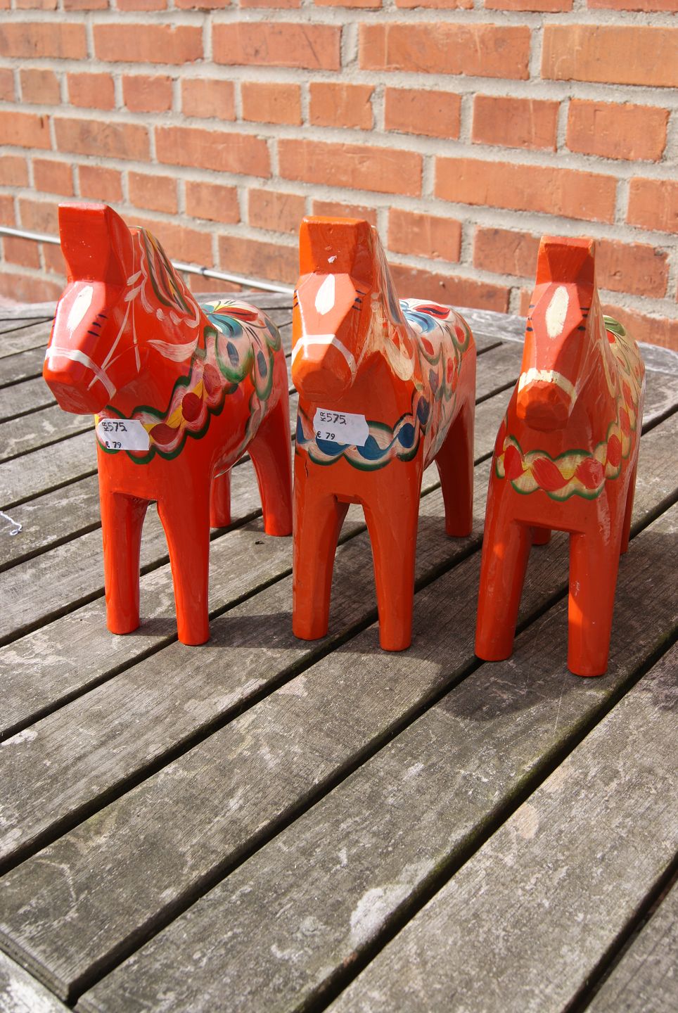 We have a large selection of Dala horses in different colour and sizes. All with normal usage wear.