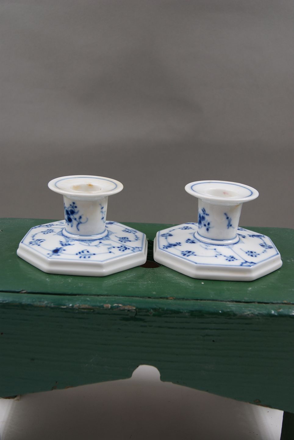 Blue Fluted plain Danish porcelain. Pair of low candlesticks No 3334