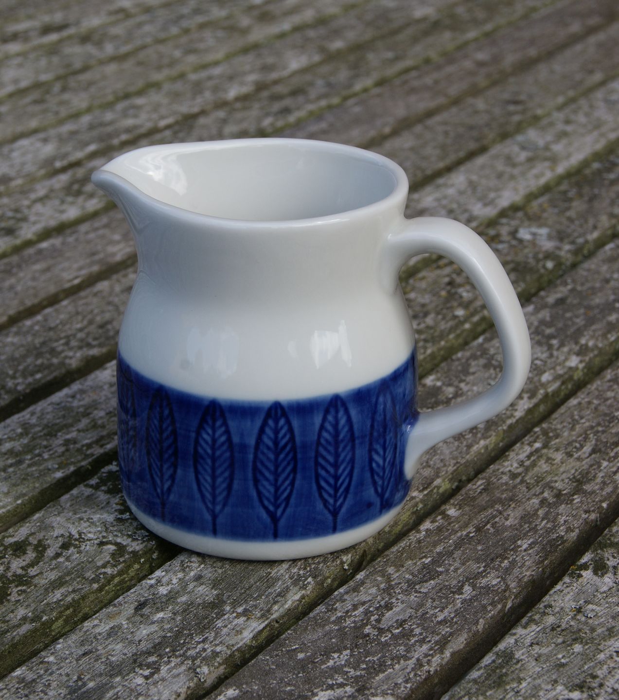 Koka blue China porcelain dinnerware by Rorstrand, Sweden. Cream jug in a good used condition. H 7.5cm Stock: 8, but please contact us for current stock. Item number: po-Koka flødekande