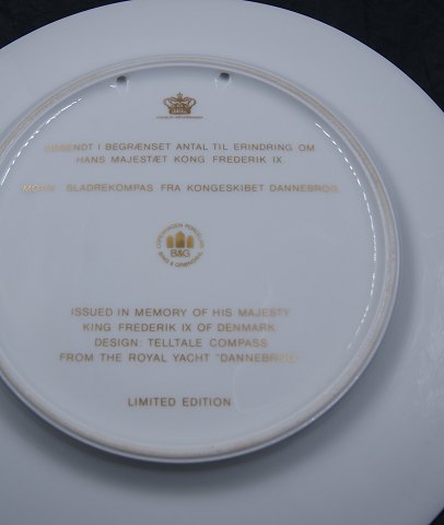 Bing & Grondahl Commemorative plate in limited edition, issued in memory of his Majesty King Fredrik IX of Denmark 11.3.1899 - 14.1.1972. It is in a very fine condition with slight wear on 2 letters (E & R).