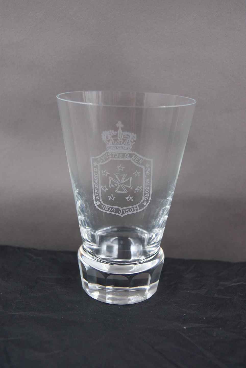 Danish Masonic glass Freemason glass, beer glass for Syvstjernen in Aalborg, engraved with freemason symbols on an edge-cutted foot.