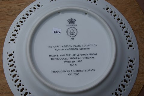 Bing & Grondahl B&G Carl Larsson plates with children motifs. Carl Larsson plate No 6 by B&G in the American version. Section of the painting "Mors og Småpigernes værelse" (Mothers and the little girls room), painted in 1918. Produced in a limited edition of 7500.