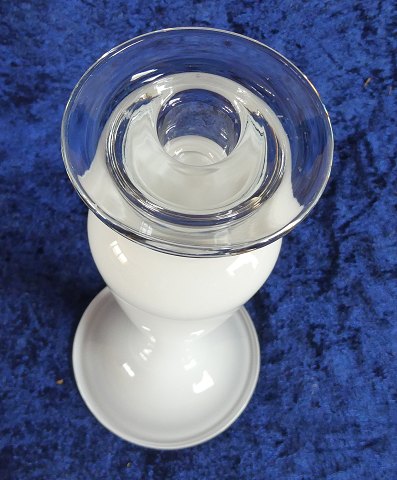 Holmegaard glass art. Vase/candlestick of milk white glass 18.5cms.