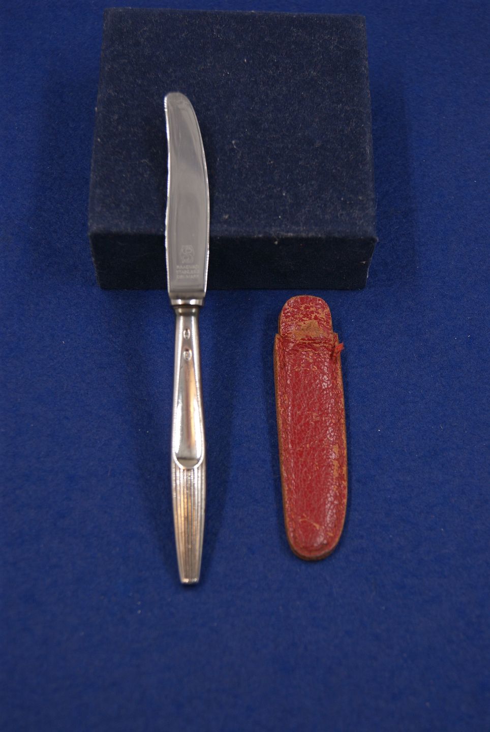 Reisenmesser oder Taschenmesser in gutem, gebrauchtem Zustand, und mit rotem Etui mit Verschleiß.