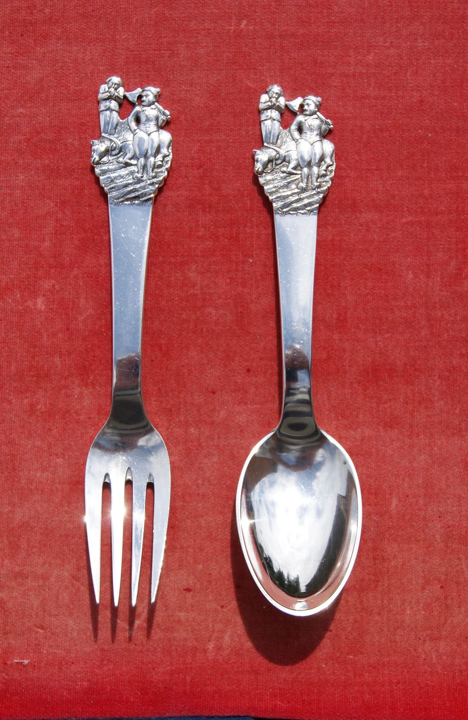 Abenteuer dänisch Kinderbesteck Taufbesteck aus drei Türme oder 830S Silber mit Kleiner Klaus und großer Klaus.