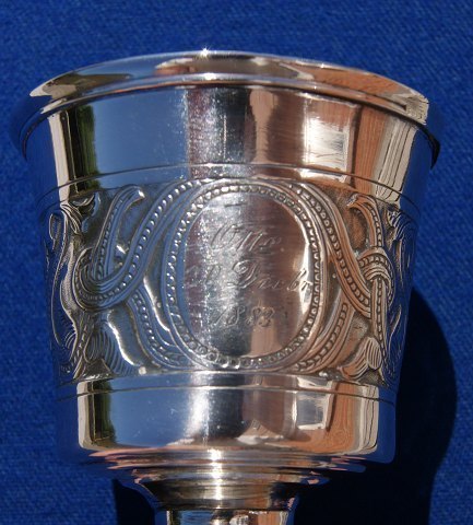 Becher auf Fuss oder Taufbecher auf Fuss aus dänisch drei Türme Silber um Jahr 1870 herum. Sehr schön dekoriert.