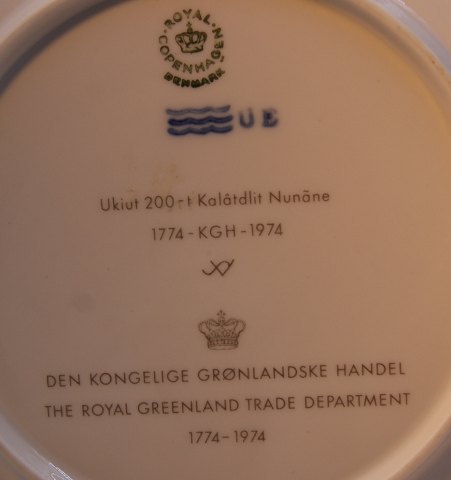 Royal Copenhagen platte udgivet i 1974 i anledning af 200 års dagen for den Kongelige Grønlandske Handel 1774-1974.