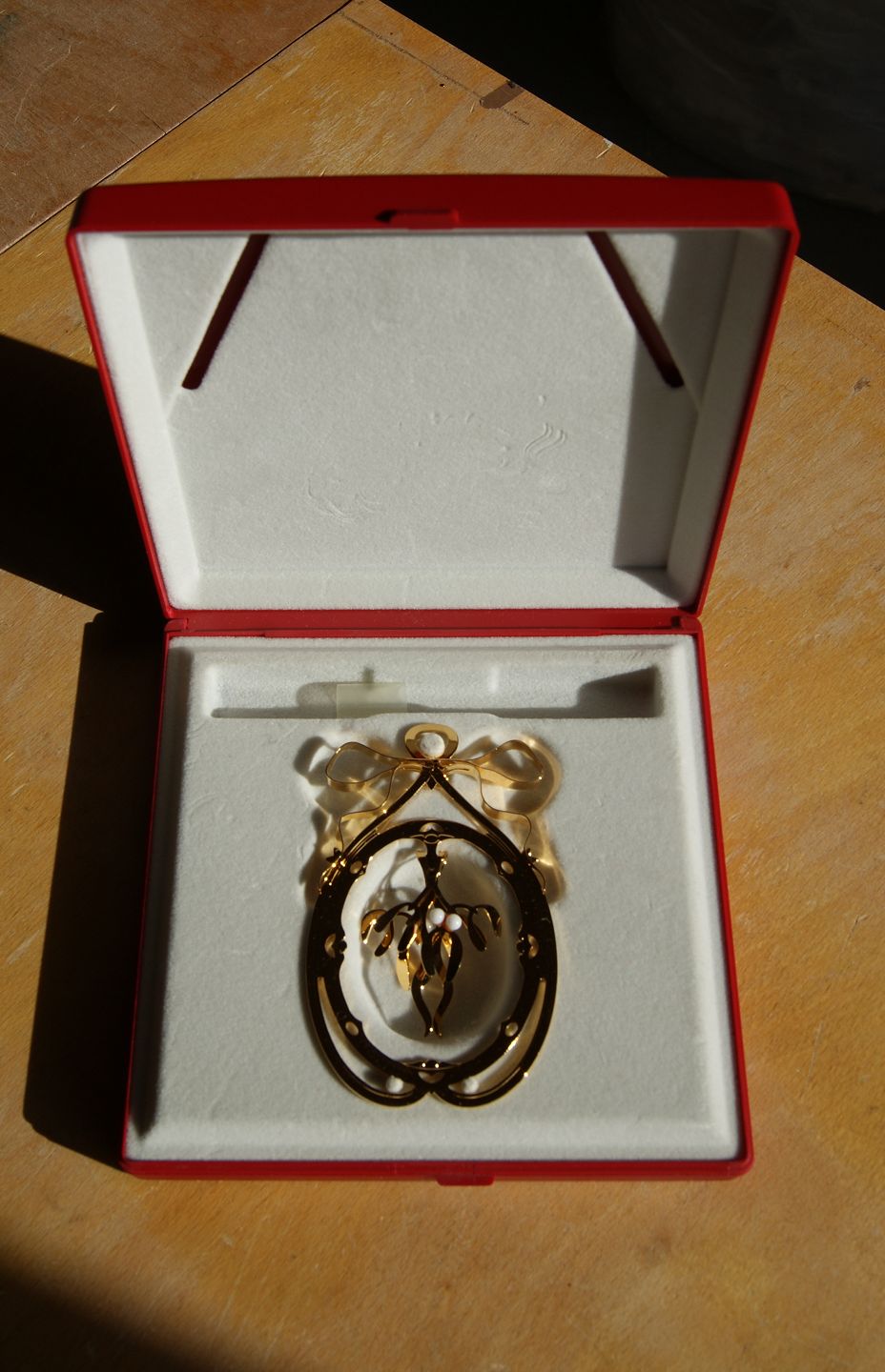 Georg Jensen Juleuro 1994, designet af Jette Frölich, i rød æske uden bånd.