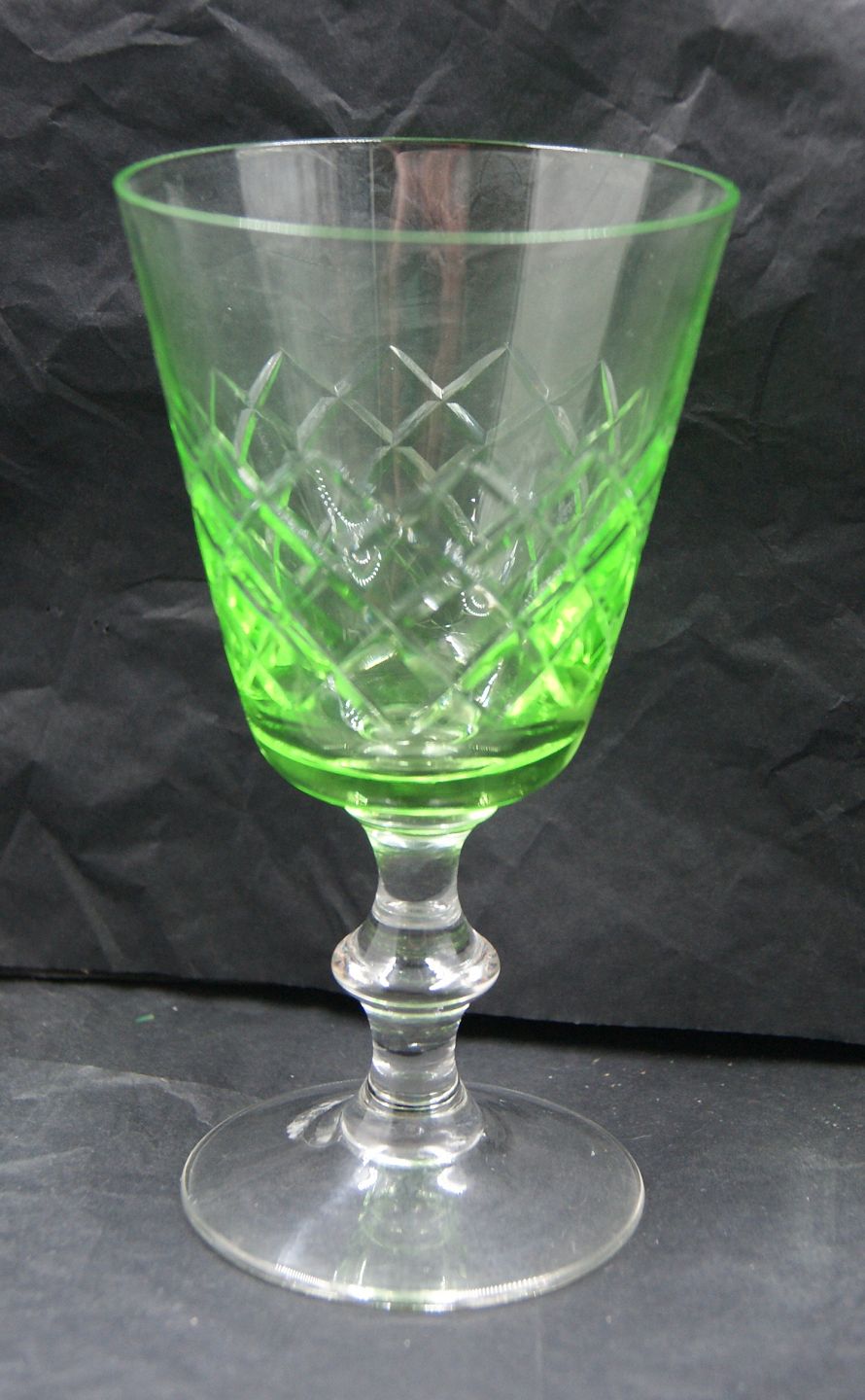 Eaton glas med sleben kumme. Grønne hvidvinsglas 13cm