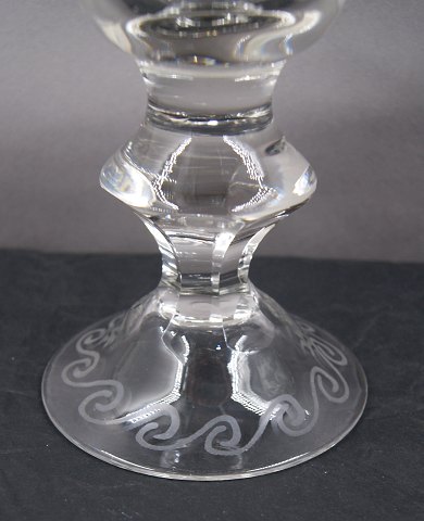 Øverst og på fod er glassett dekoreret med en bort af sammenhængende "C'er".