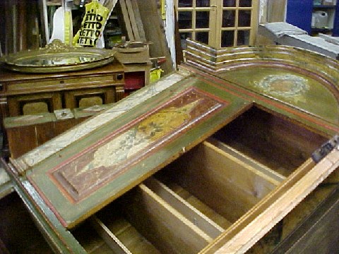 Meget smukt eksempel på dansk eller tysk barokskab fra tidligt i 1700-tallet. Barokskabet er afrenset for fernis og politurlak, sådan at det nu fremstår i sin oprindelig farve og glans.