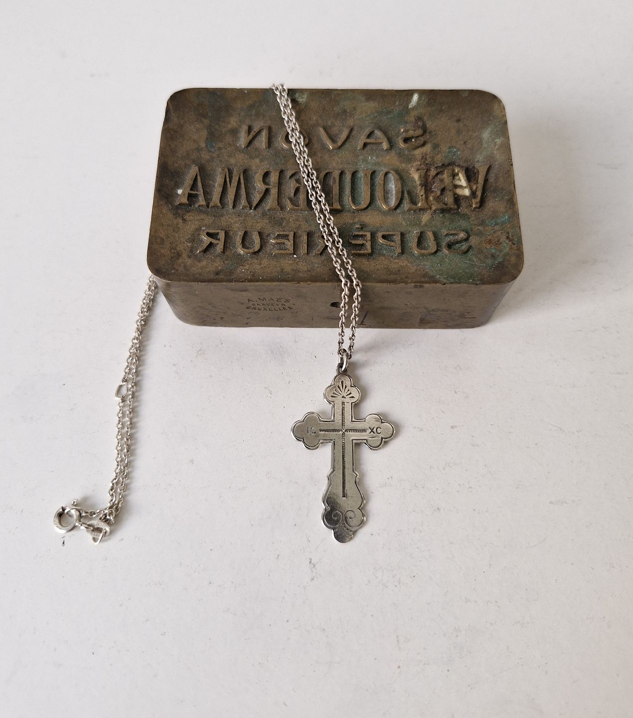 Smukt gammelt sølv kors i sølvkæde
