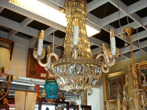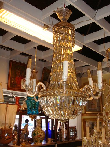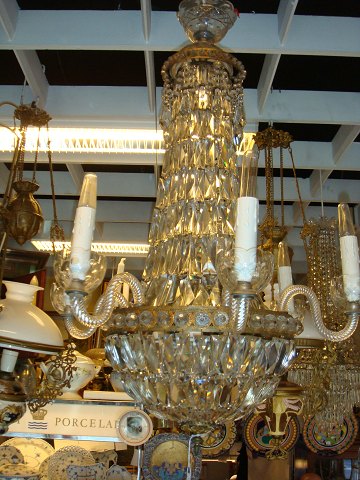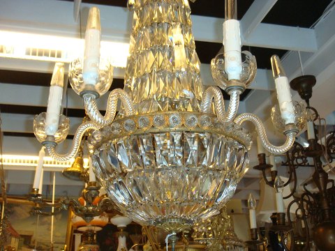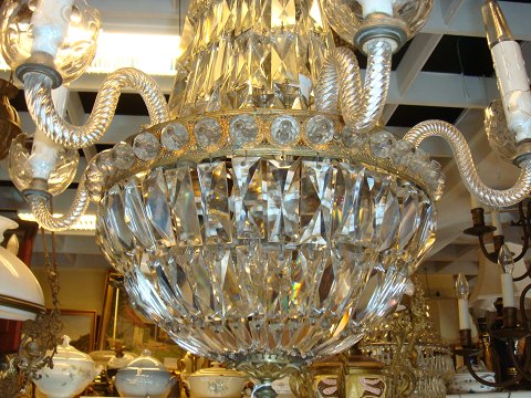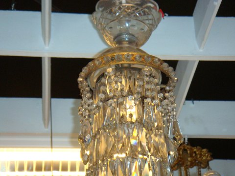 Crystal chandelier with 6 light arms Height: 85 cm Dia: 60 cm Very nice and well kept