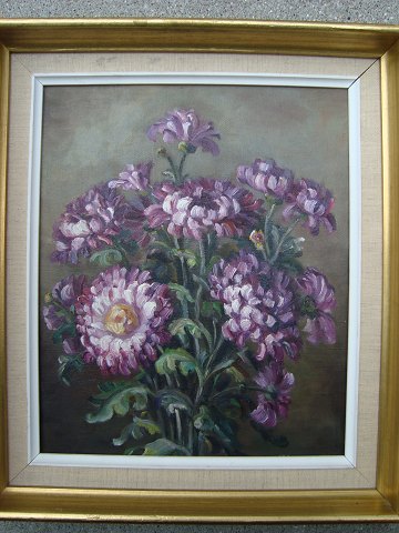Maleri af D. Bergmann - "Lilla krysantemer"