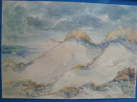 Akvarel af Aksel Lundgreen - Motiv fra klitterne ved Lyngby ved Vestkysten 1955.