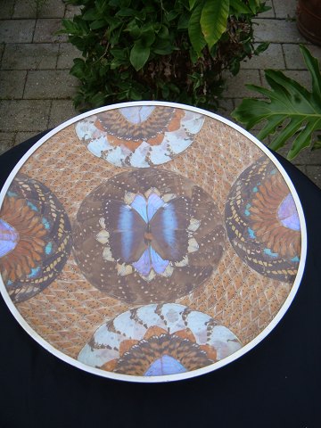Stort Flot Fad med indlagt sommerfugle i mønstre