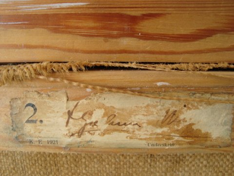 Bagpå 2 mærkater fra udstillinger, bl.a. Kunstnerners Efterårsudstilling 1921 - nr. 2.