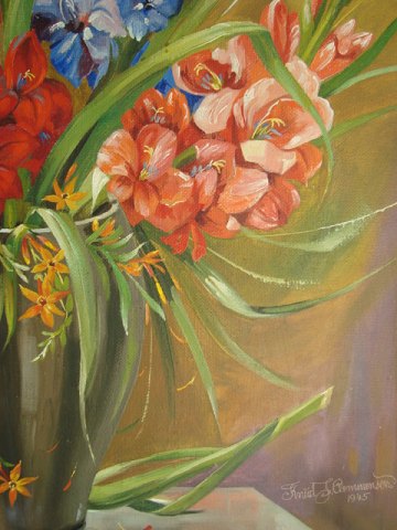 1 1940'er lavede han en del blomstermalerier. bl.a. nærværende fra 1945.