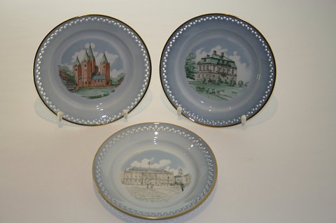 Danmarkstellet, Bing & Grøndahl. Kagetallerken med hulbort. Dekorationsnr. 616,5. Diameter 17 cm. Forskellige motiver: