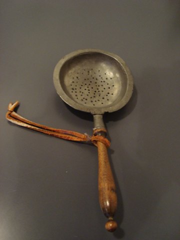 Antik tin tesi med drejet træ håndtag.