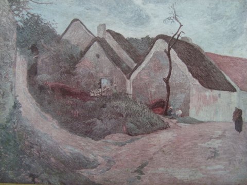 Text available in Danish: Tryk efter maleri af Paul Gauguin - "Landskab fra Bretagne 1883"