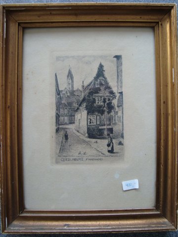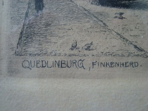 Text available in Danish: Tysk radering af Franz Jander fra Finkenherd, Quedlinburg.
