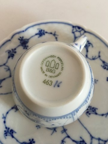 Bing & Grøndahl Blåmalet Musselmalet Mokka Kop og Underkop No 463. Måler 6,8 cm (2 43/64 in) og er i god stand.