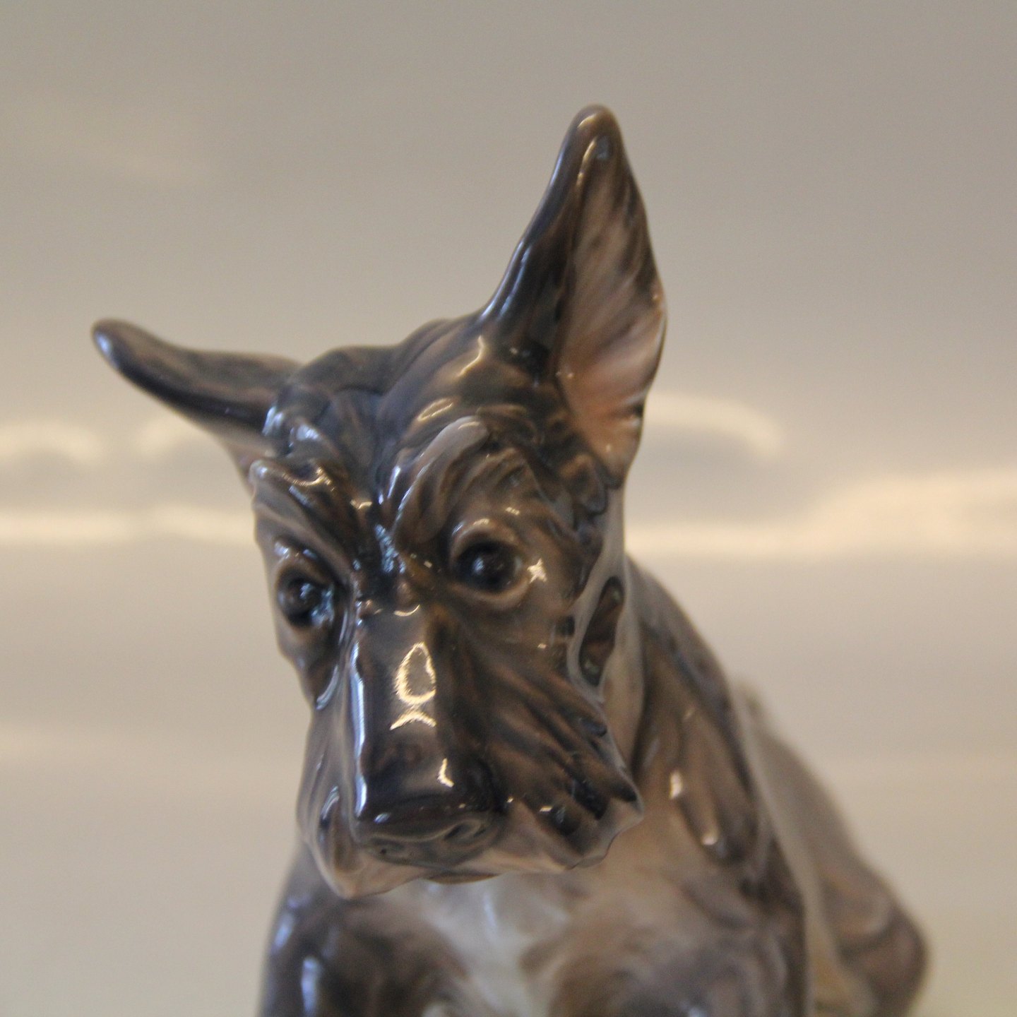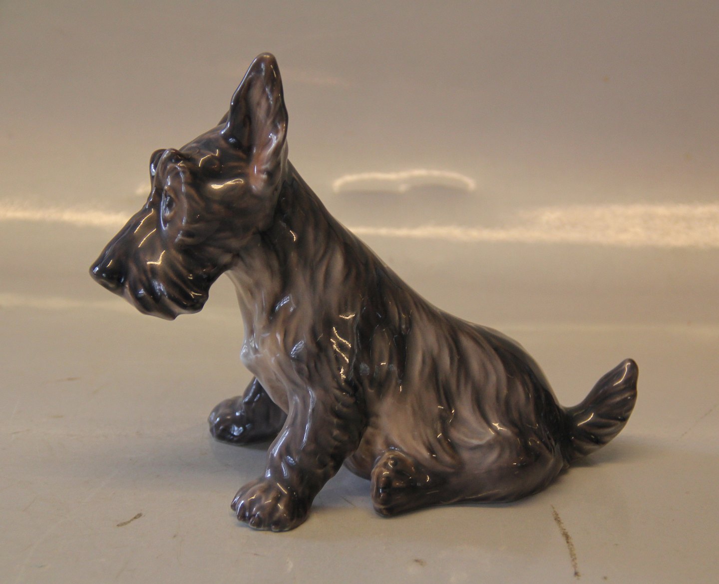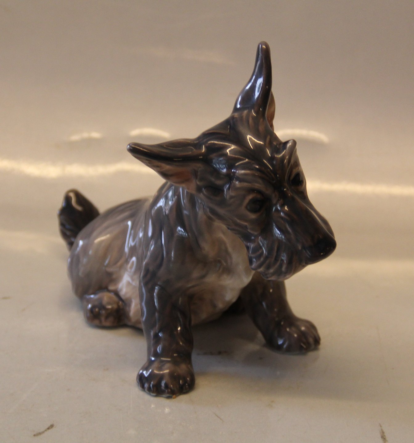 Dahl Jensen hund 1078 Skotsk terrier, siddende (DJ) 18 cm Mærket med kongelig krone og DJ Copenhagen i hel og fin stand. 1. sortering