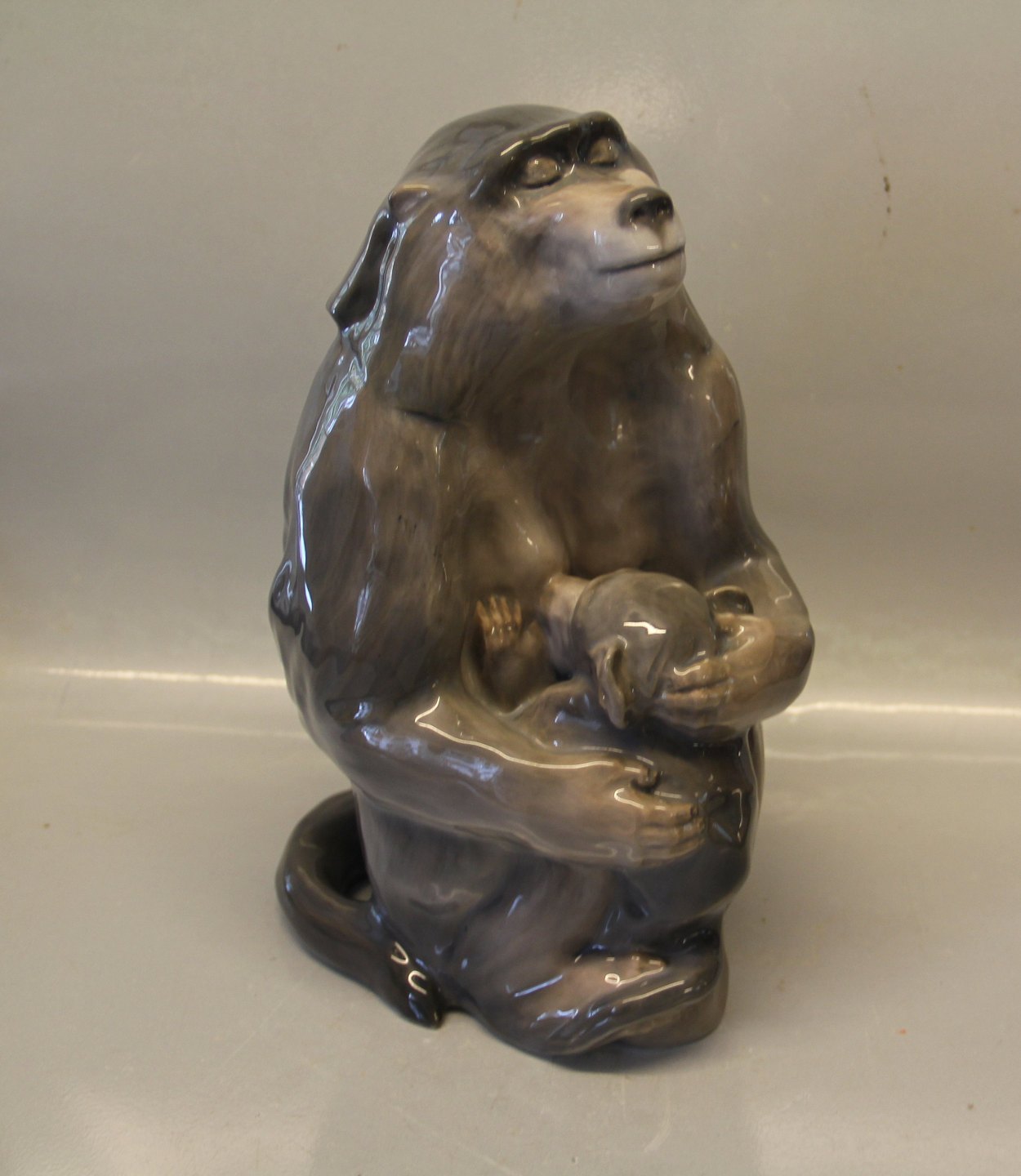 Royal Copenhagen Primate 1199 RC Monkey and baby Knud Kyhn pre-1910 30 x 19 cm In mint and nice condition