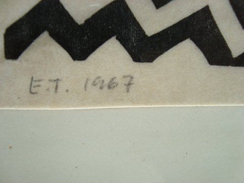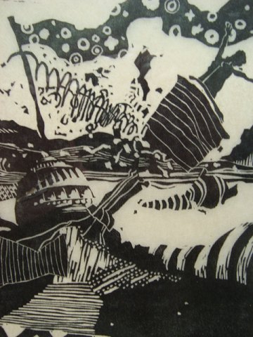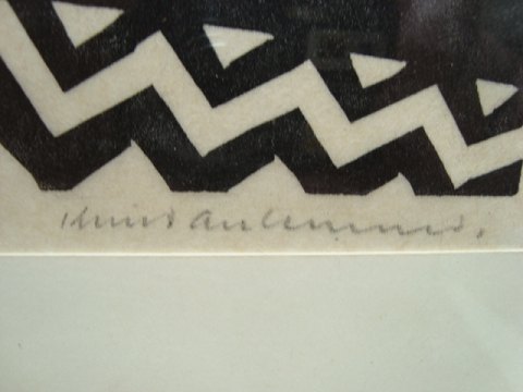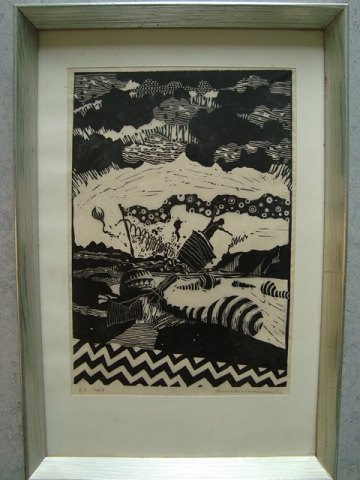 Text available in Danish: Linoleumstryk af Knud Andersen - Ballonfald 1967.