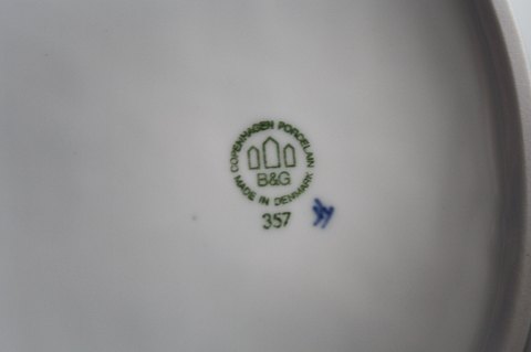 Bing & Grøndahl, Empire, Bladformet kagefad. Længde 25 cm. Bredde 18,5 cm. Nr. 357 og 199. I. og II. sortering. Pris: 200 kr. stk. Lager: 3