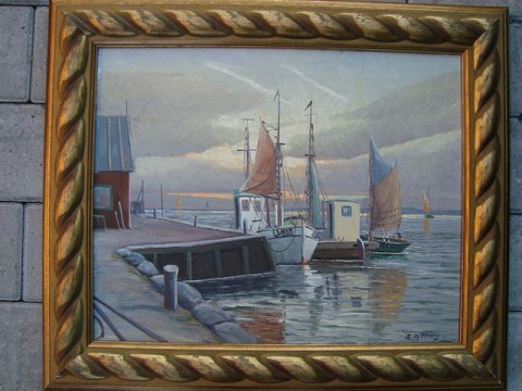 Maleri af Erik Ytting - Havneparti