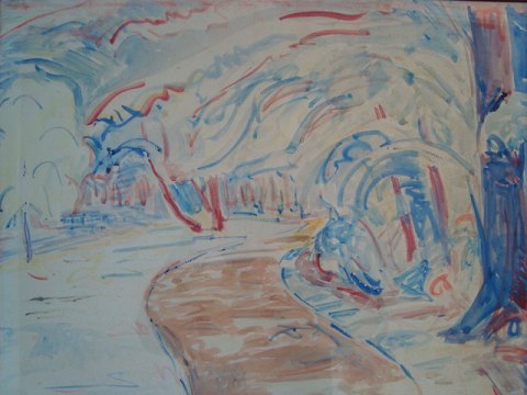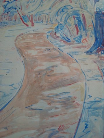 Akvarel af H.J. Korn 1941 - Vej gennem landskab.