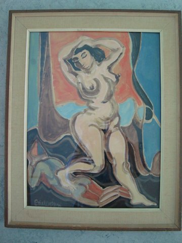 Gouache af Erik Larsen - Nøgen frodig kvinde.