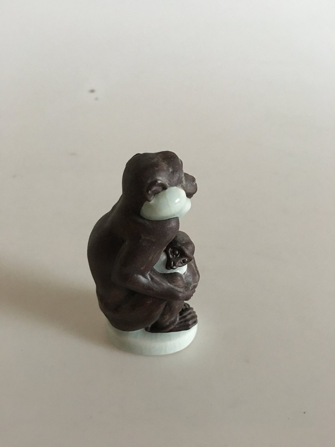 Royal Copenhagen Stoneware Jeanne Grut Monkey and Monkey with Young figurines. Measures 7,5cm and 3,5cm