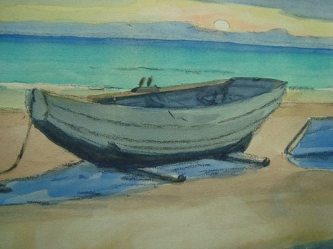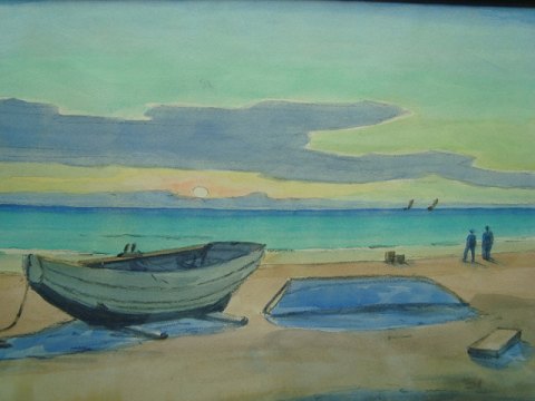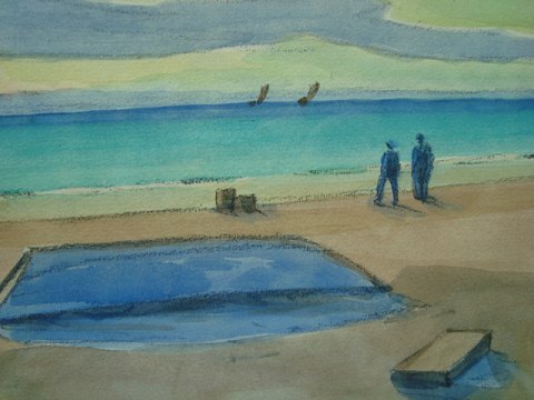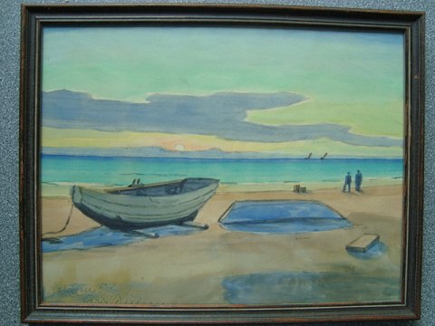 Akvarel af Lars Nielsen - Løkken Strand 1958.