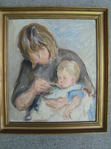 Maleri af Hans Eriksen - Mor med barn - 1969.