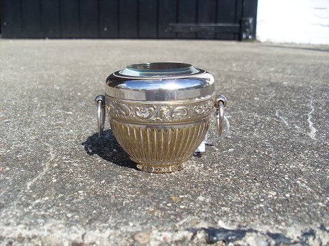 Forsølvet bonbonier med glas låg, indvendig forgyldt.
