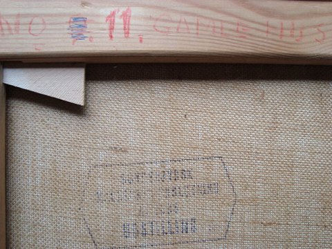 Maleriet har været no. 11 på udstilling ved Sønderjysk Maleri sammenslutning af 1935 (nummerering og stempel bagpå).